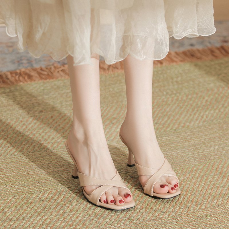 316-F3 High Heel Square Toe High-grade Outdoor Slippers