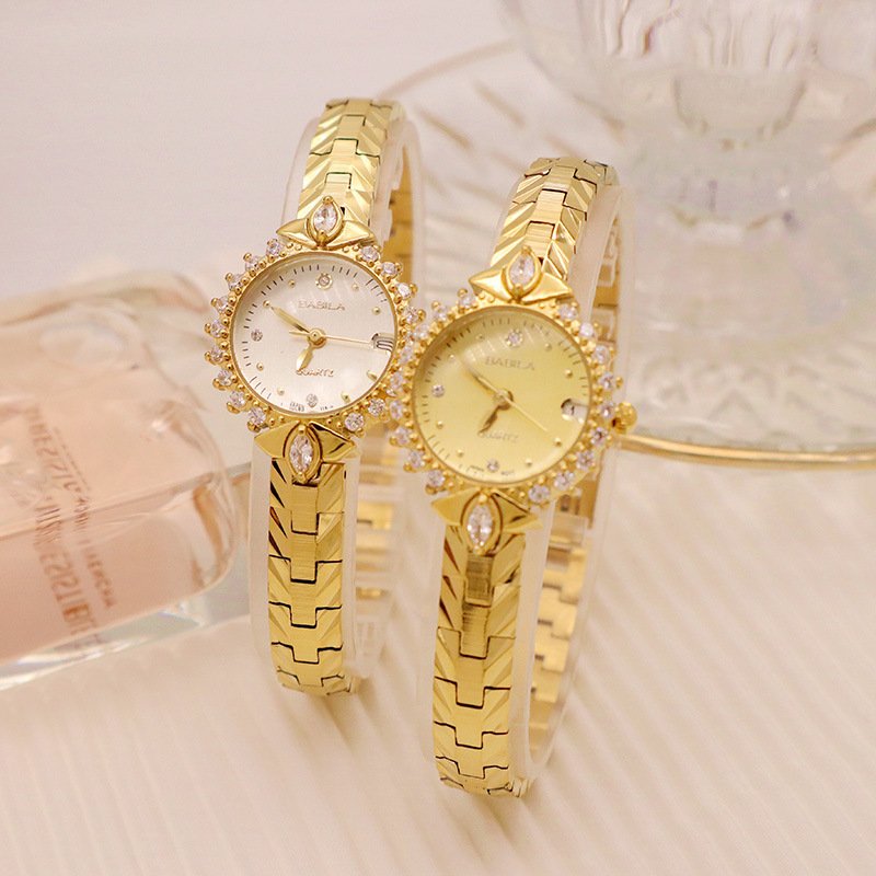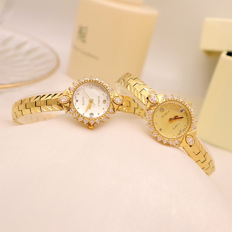 Exquisite Vintage Jewelry High Sense Precision 5A Diamond Embossed Bracelet Temperament Quartz Small Golden Watch Wholesale
