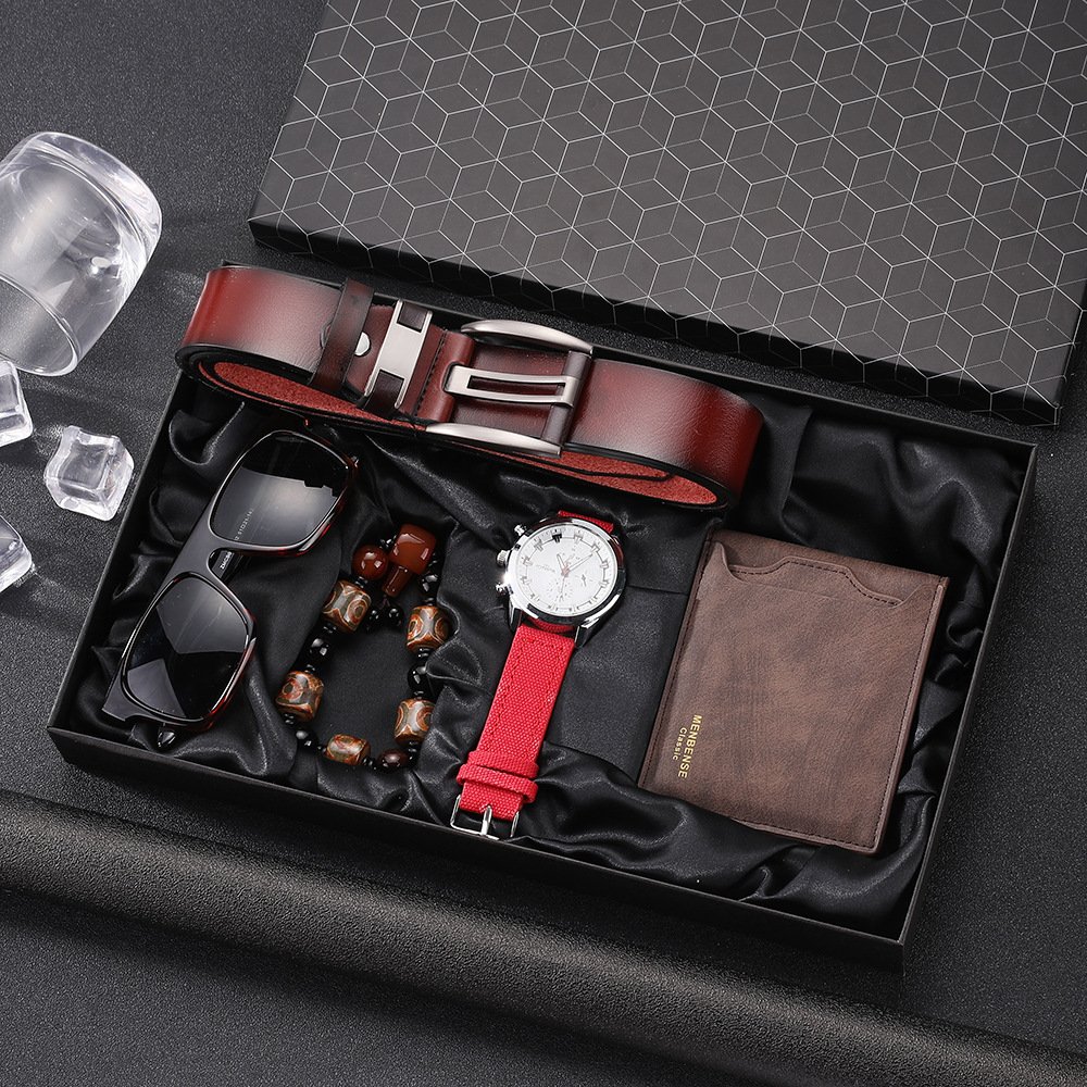 Watch + belt + glasses + wallet + bracelet