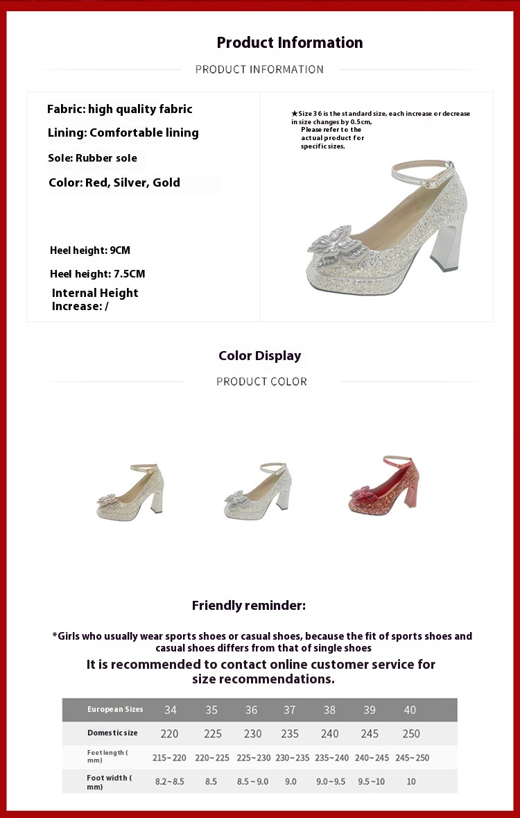 Heel height: high heels (6-8CM)