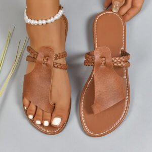 Be the first to review “Women’s Solid Color Woven Simple Daily Beach Slippers”